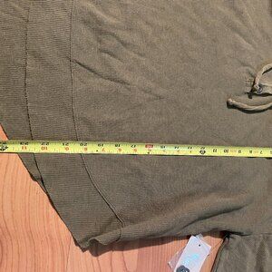 From Kohl's this is a SO Goods For Life Henley Hoodie in green. (SO supports more sustainable cotton farming). It's brand new, with tags still, but never worn (I have SOOO many things like this from over the years) - now just something that I'd love to find a home for and I'm hoping someone else will love. It's a gorgeous cotton, a thermal waffle shirt. that's 60% cotton and 40% polyester blend that is perfect for the season, in a neat army green, it's the perfect thermal style shirt with sass and the most unique circular lower hem - a high / low type style. It comes with an extra button, for those just in case moments, and it's listed retail is $36. Thanks for looking!!