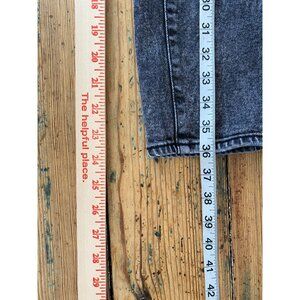 These high-rise mom jeans in a trendy black acid wash feature a comfortable fit with a touch of stretch. Crafted from 98% cotton and 2% spandex for ultimate wearability, they combine style and practicality. Size marked as 9/29W with a flattering classic mom-jean silhouette. Made in Bangladesh.