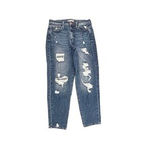 SO High Rise Mom Jean Distressed Women's size 5 Dark Wash Blue Denim Jeans