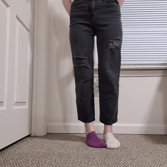 SO (Kohls) brand High Rise Straight Jeans. Super cute and in good condition, just too short for me! Size 3 (juniors)/ waist size 26 inches. Inseam length is 25 inches. 99% cotton. #jeans #straightleg #ripped #distressed #cotton