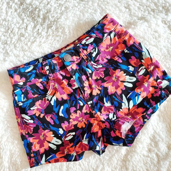 SO High Waisted Floral Shorts. Super cute vibrant floral pattern with belt loops. 3 front pockets and 2 back pockets. Single button and zipper closure. Worn a few times. Great condition. No holes, stains, or tears.