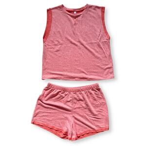 SO Intimates French Terry Sleep Set Medium Coral Tank Top Shorts Pajamas NWT