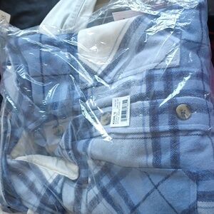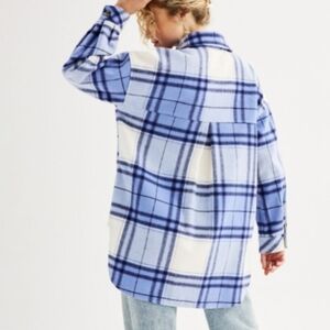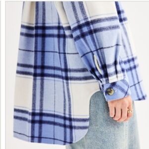 SO Jacket Shirt Blue Plaid Size 1X Wool Viscose Blend NEW Oversized
