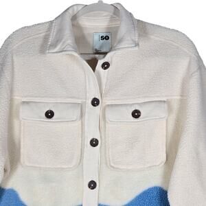 SO Jacket Womens XS Cream Sherpa Fleece Mountain Print Outdoors Camping Gorpcore
