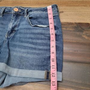 SO Jean Low Rise Midi Short Cuffed Hem Mid Wash Denim Y2K 5 Pockets Size 13/31W