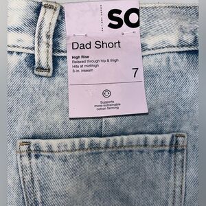 SO Jean Shorts "Dad Short" Frayed Hem Juniors Sz 7 High Rise Relaxed Fit Light