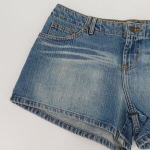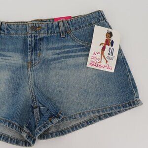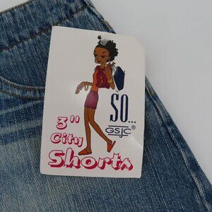 SO Juniors 11 No Waist Blue Denim Jean City Shorts 3in Inseam Whiskered Y2K NEW