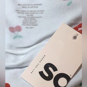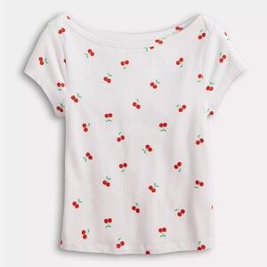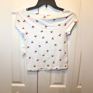 SO Juniors Cherry Print Boat Neck Baby Tee. New with tag. From smoke free home.