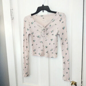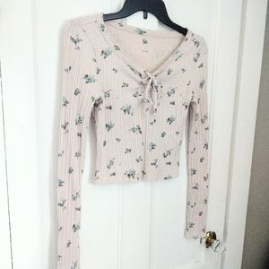 juniors small, small tops, small shirts, long sleeve top, crop top, cream top, flowered pattern