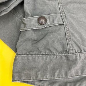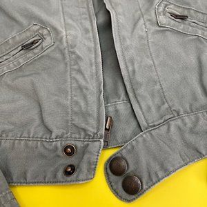 Jacket is made of tightly woven soft canvas like fabric with soft ribbed collar.