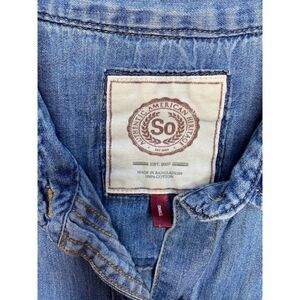 SO Juniors Medium Wash Blue Denim Chambray Long Sleeve Cotton Top sz Small