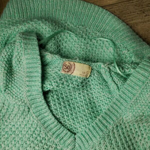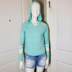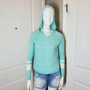SO Juniors Mint Green V-Neck Knit Hooded Sweater Size Small NWOT