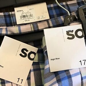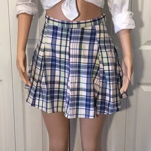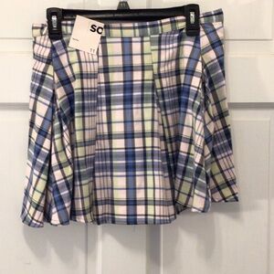 SO Juniors Navy Blue/Pink Plaid High Rise Pleated Flare Mini Skirt. New with tags. From smoke free home.