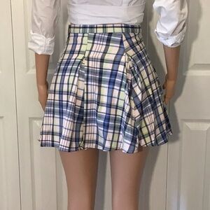 SO Juniors Navy Blue/Pink Plaid High Rise Pleated Flare Mini Skirt