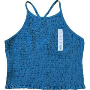 SO Juniors XL teal Halter Neck Crop Tank Top Cotton Blend Stretch