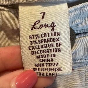 cotton/spandex. measures approx 15" waist flat, 8" rise, 32" inseam