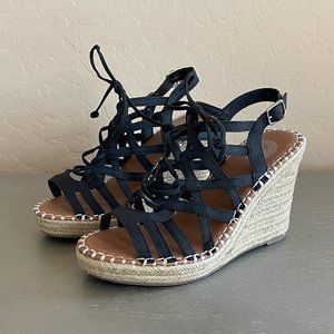 SO Kohls 6 Ketch Black Lace Up Jute Platform Wedge Espadrille Sandals Worn Once!