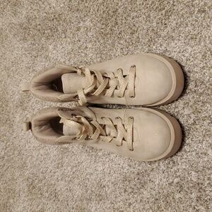 girls size 4 lace up faux suede ankle boots in gently used condition. moscovy cream beige color with sparkles. a few marks as shown