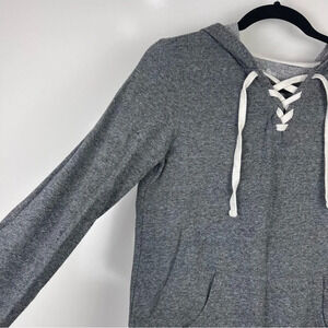 SO Lace Up Tunic Hoodie Sweater Grey Size Small