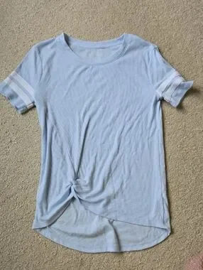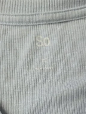 Soft ribbed tank in pale blue. Slim fit with stretchy fabric. Minimal logo at neckline. Easy everyday layering piece.