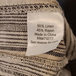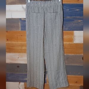 Linen blended wide leg pants in a size M. The brand is SO from Kohls. The colors are cream and navy blue. Elastic waist with front tie. Great quality and perfect for summer.