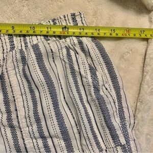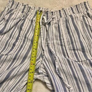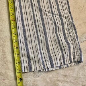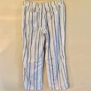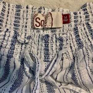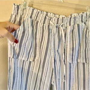 SO Linen Pants Medium White Blue Striped Smocked Waistband Ties Pockets