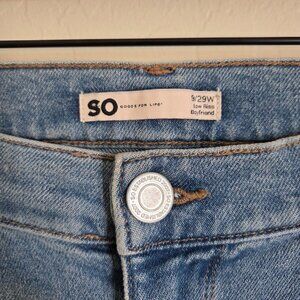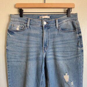 SO (Kohls) Low-Rise Boyfriend Ankle Jean Blue Distressed Denim Size Women's (Junior's) 9 Rolled Hem Cotton