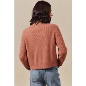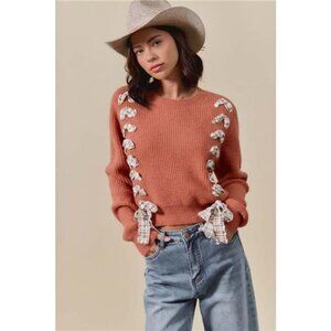 SO ME Checkered Plaid Tape Lace Up Ribbed Sweater