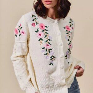 SO ME Floral Embroidered Coquette Sweater Cardigan