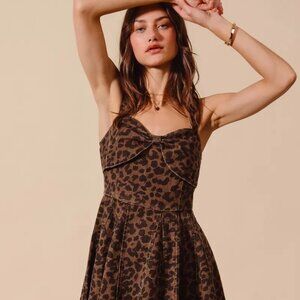 SO ME Mineral Washed Leopard Flare Cami Dress
