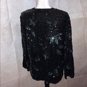 SO MUCH SPARKLE! Black & Colored Sequin Silk Jacket - Design is Understated Floral - Absolutely Gorgeous !!!