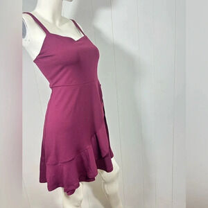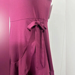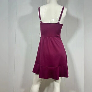 SO Maroon Mini Wrap Dress Spaghetti Strap Square Neck Size M