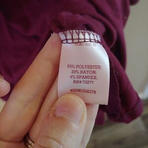 Materials: 63% Polyester, 33% Rayon, 4% Spandex