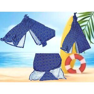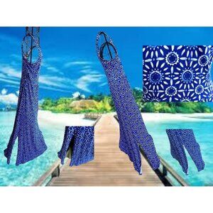 SO Maxi Dress Girls Sz M Blue White Floral Sleeveless Strappy Back Side Slits