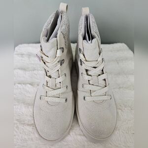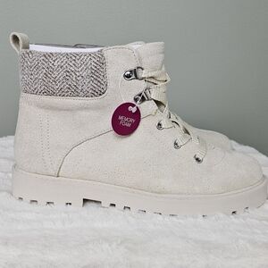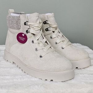 SO Muscovy Girls Lace-Up Vegan Suede Sparkly Ankle Boots 5 CREAM