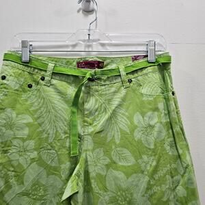 SO NEW W/TAG VINTAGE Y2K Crop Floral Hibiscus Pants Capri Green Nature Junior 9