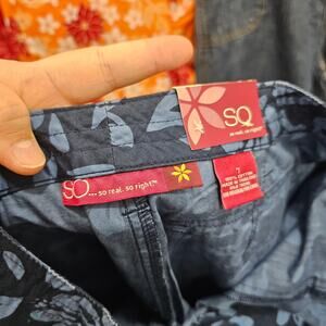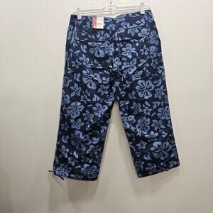 SO NEW W/TAG VINTAGE Y2K Crop Floral Hibiscus Pants Capri Navy Blue Junior 7