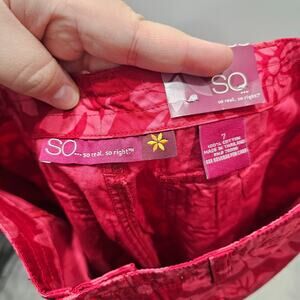 SO NEW W/TAG VINTAGE Y2K Crop Floral Hibiscus Pants Capri Red Pink Junior 7