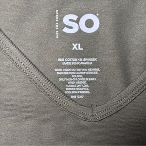 SO Olive Green V-Neck Short Sleeve Tee Women’s/Juniors Size XL NWT