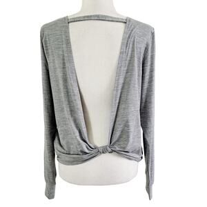 SO long sleeve top. Open back. Twisted hem. V-neck. Thumbhole sleeves.