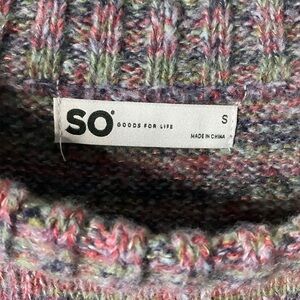 SO Oversized Sweater Multi Striped Colored Heart Cozy Fall Collegiate Women SZ S