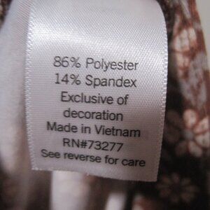 The SO Pants Women's Medium Leggings come with a floral pattern with a high rise flare. These leggings feature a pull-on closure, elastic waist, and 31-inch inseam. Made from polyester and spandex, they are lightweight, comfortable, and stretchy, making them suitable for winter, fall, and spring seasons. The brown color and nature-themed design make them perfect for travel, parties, and casual occasions, adding a touch of fun and retro flair to the wearer's outfit.