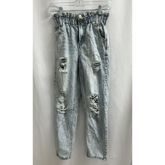 SO Paperbag Jeans Womens 0 24 Waist High Rise Mom Lightwash Ripped Destroyed