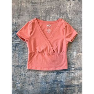 SO Peach Pink Short Sleeve Faux Wrap Front Crop Top XS