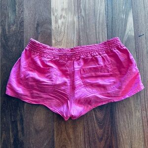 Vibrant pink athletic shorts by SO. Features a comfortable elastic waistband and soft fabric. Ideal for workouts or casual wear. The SO Linen Pink Shorts with Tie offer a stylish and comfortable option for women. Made from 100% cotton fabric, these chino style shorts feature an elastic waist for added comfort. The high rise waist adds a flattering touch, while the breathable material and lightweight design make them perfect for warm weather. Complete with pockets for added convenience, these shorts are a versatile addition to any wardrobe.size large