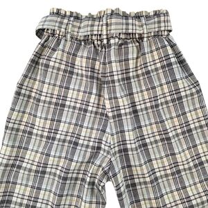 SO Plaid Paperbag Elastic Waist Belted Pants | Size Junior's Small Academia