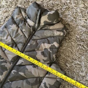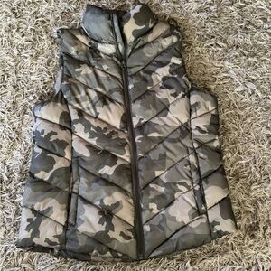 SO Quilted Vest Army Green Camouflage Womens Large EUC Puffer Full Zip Up Pocket