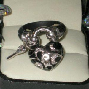 SO RARE Womens Black White Puffy BELLE ETOILE KEY TO MY HEART Charm Ring 8 8.5