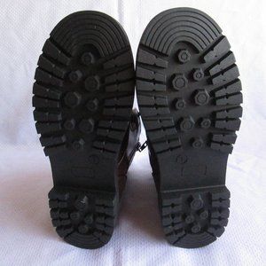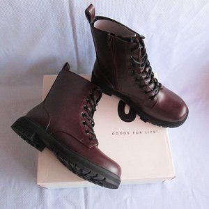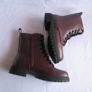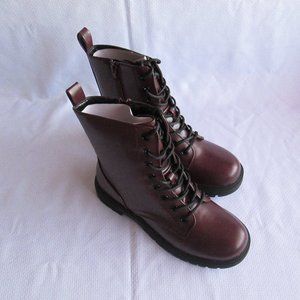 SO REINDEER BROWN COMBAT BOOTS (SIZE 7) SHOE FEATURES • Side zipper for easy on and off • Durable rubber outsole SHOE CONSTRUCTION • Polyurethane, fabric upper • Fabric lining • TPR outsole SHOE DETAILS AND APPROX. MEASURES • Round toe • Lace-up, zipper closure • Padded footbed • 0.6-in. heel • 5.75-in. shaft • 10.5-in. circumference 💥 BURGUNDY AND BLACK LISTED AS WELL