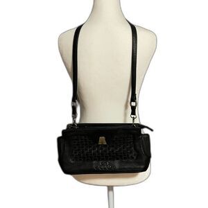 SO Rachel by Longaberger Black Woven Shoulder Bag Purse Faux Leather Y2K